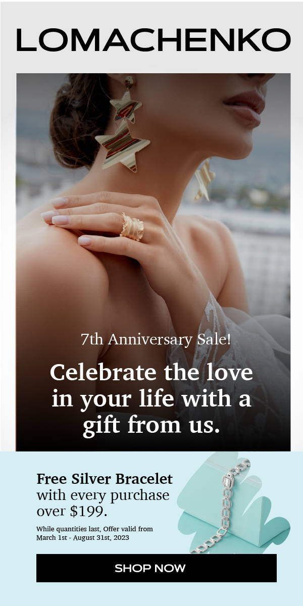 Or, the jewelry store can tie their anniversary gift campaign to a life event by referencing their own anniversary. In this case, they would create a campaign encouraging shoppers to celebrate their anniversary alongside the stores.